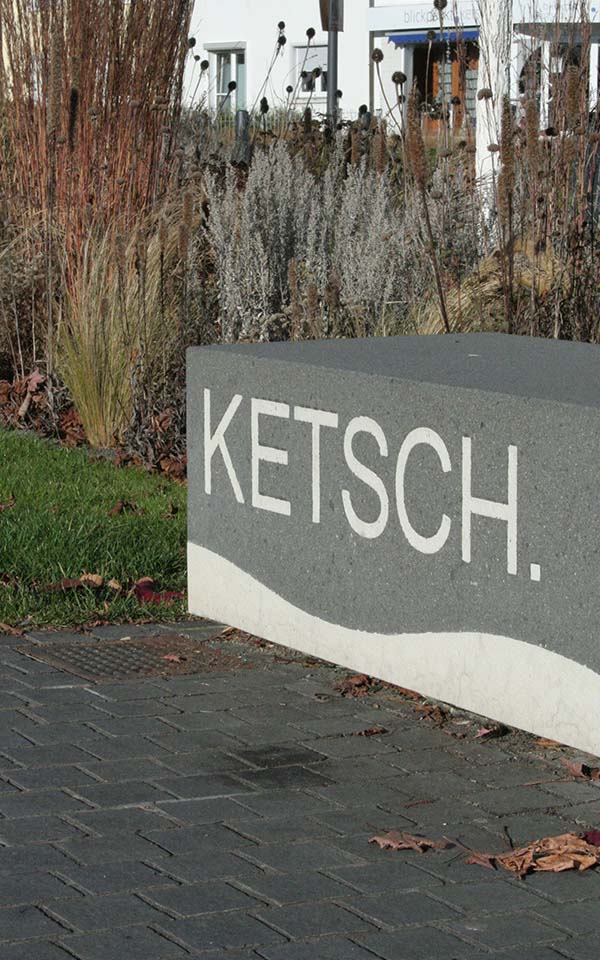 • Sitzelemente aus Beton mit Schriftzug Ketsch
