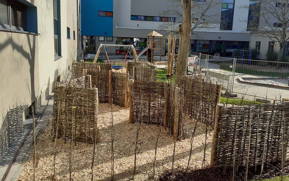• Heckenlabyrinth aus Naturflechtzaunmatten verbaut